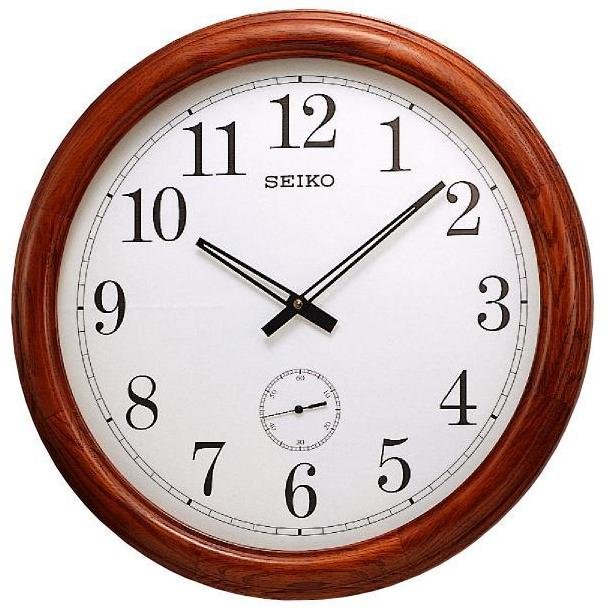 Настенные часы Seiko QXA155BКварцевые настенные часы, корпус сделан из дуба, отдельный циферблат секундной стрелки, размер Ø 50.5 х 6.2 см, батарейки : 2 шт. АА в комплекте