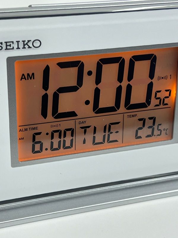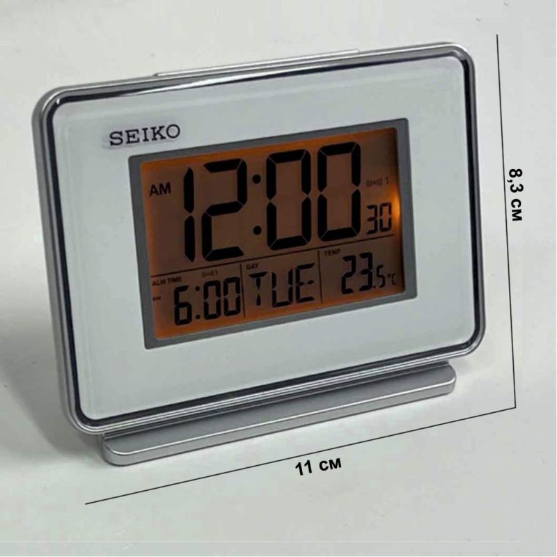 Настольные часы Seiko QHL068WN. Кварцевый цифровой будильник, календарь, термометр, подсветка, повтор сигнала, 8,3 x 11 x 6cm , батарейка 2 шт. АА в комплекте