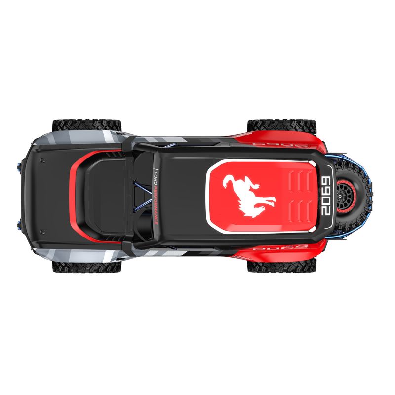 Автомобиль оснащён бесколлекторным двигателем, обеспечивающим высокую скорость, резкий разгон и стабильную работу даже при интенсивных нагрузках. Полный привод 4WD и независимая подвеска позволяют уверенно преодолевать песок, гравий, траву и неровные поверхности. Металлические элементы трансмиссии повышают надёжность и срок службы модели.